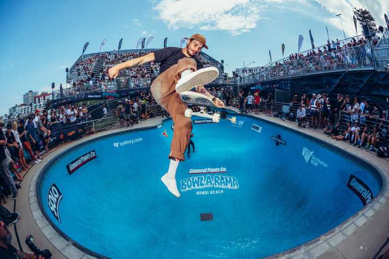 General Pants Bowl-a-rama is the largest professional bowl event in the Southern Hemisphere, held over 2 days in Sydney’s Bondi Beach. The event plays host to some of the world’s best riders and has had Tony Hawk, Greyson Fletcher, Tom Schaar and Poppy Olsen grace the bowl over the past few years.