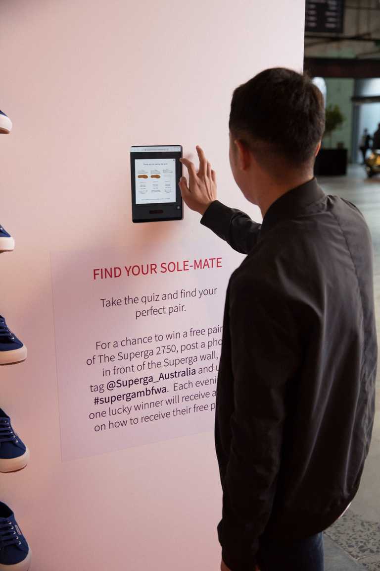 Our Friends Electric created an activation that would grab the attention of the key attendees throughout the week and ensure true engagement with the brand. An eye-catching retail display was created onsite at Carriageworks whereby guests were invited into the space for an opportunity to win a pair of Superga’s via a quick quiz on an iPad.